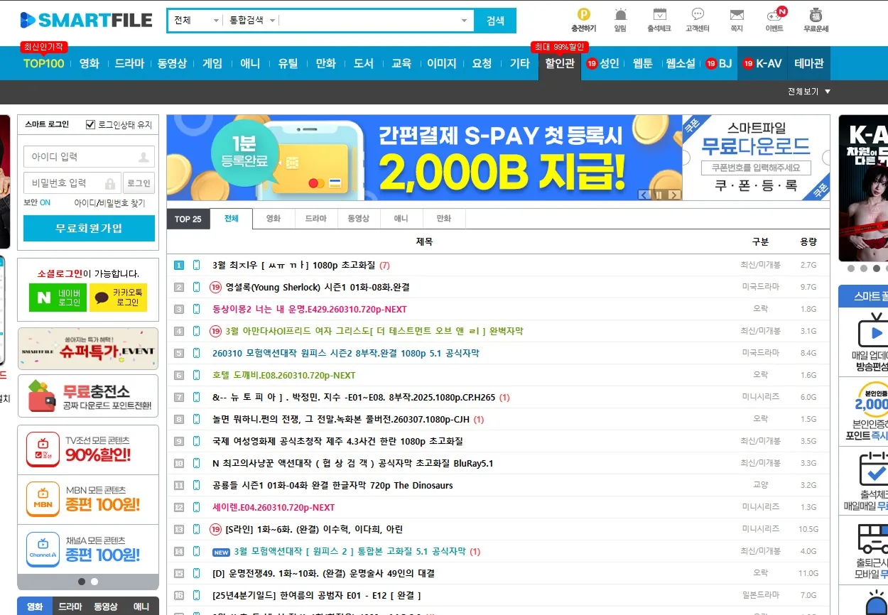 추가 메모: 스마트파일 영화·스마트파일 드라마·스마트파일 애니처럼 영상·만화 계열 존재감이 강하고, 전반적인 분위기는 전통 웹하드 감성에 가깝습니다.